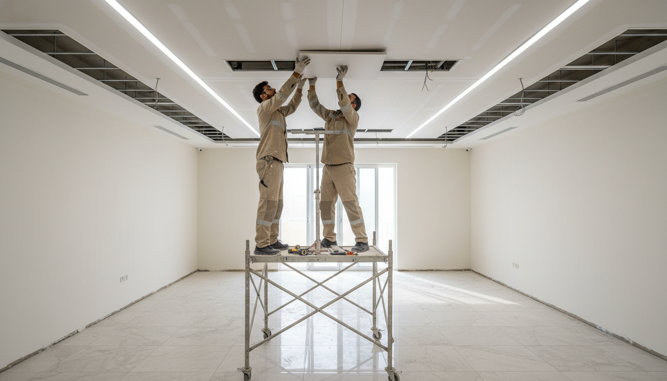 تنفيذ أسقف مستعارة متنوعة بدقة عالية، مع تشطيبات متقنة، تكامل مع الإضاءة والتكييف، ومتانة تدوم طويلاً.